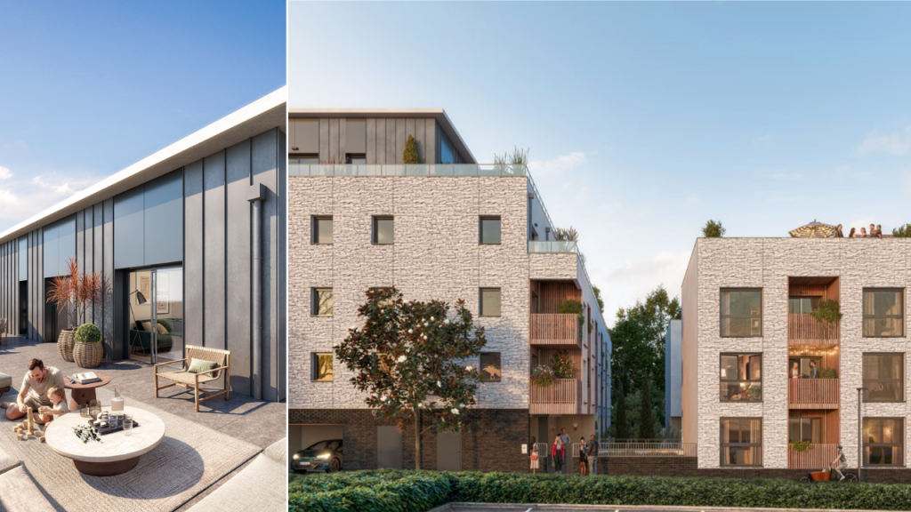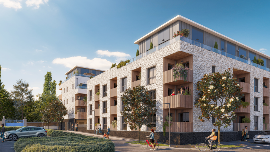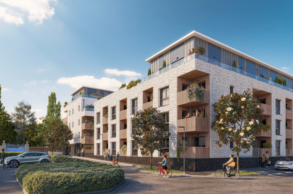 Conçu autour d’un îlot végétalisé central, le programme déploie deux immeubles de standing à l’architecture sobre et contemporaine. L’utilisation de matériaux nobles – zinc, brique, bois et béton matricé – garantit une insertion harmonieuse dans le paysage urbain. Les façades, rythmées par de généreuses loggias et terrasses, promettent des appartements baignés de lumière, pensés comme de véritables havres de paix.